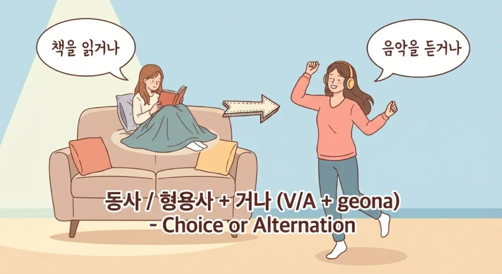 거나 là một ngữ pháp tiếng Hàn mang ý nghĩa “hoặc là / hay là”.Ngữ pháp Động từ / Tính từ + 거나